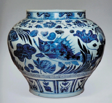 元青花 魚藻紋罐 高28.2厘米 日本大阪東洋陶瓷館藏