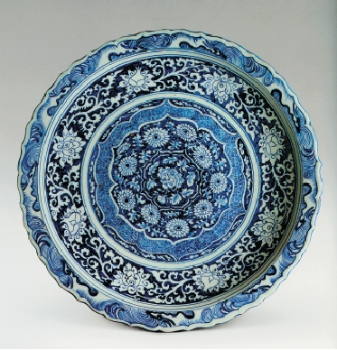 元青花 纏枝花卉紋菱口盤 口徑45.8厘米 大英博物館藏