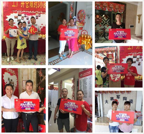 在活動啟動短短22天時間里,大將軍陶瓷總部與浙江、福建、江西、湖南、湖北、河南、廣東、廣西等九省將軍家人全力以赴,以戰(zhàn)狼精神,以將軍標(biāo)準(zhǔn)來參與戰(zhàn)斗,各大戰(zhàn)區(qū)業(yè)績飄紅,繼“京津冀”和“蘇皖滬”省級聯(lián)動后,再創(chuàng)佳績!