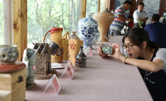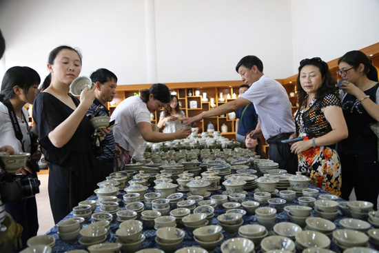陶瓷藝術(shù)作品展示臺(tái)前吸引了眾多目光