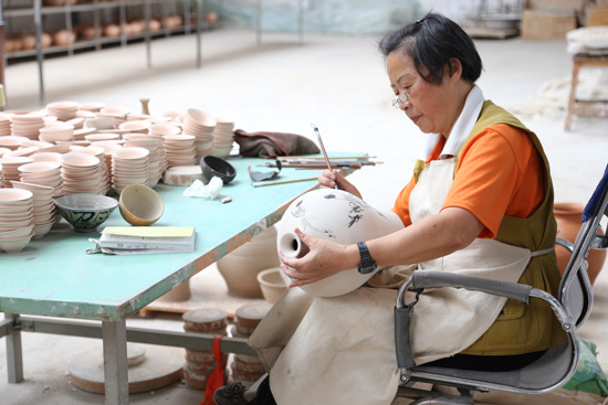 畫工為陶丕描繪圖案