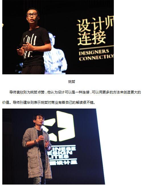 導師袁欣則為姚哲點贊,他認為設(shè)計可以是一種連接,可以用更多的方法來創(chuàng)造更大的價值。導師孫建華則表示姚哲對商業(yè)有著自己的解讀很不錯。