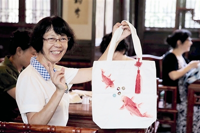 “我原本就喜歡這些針線活,以前在單位還會(huì)趁休息的時(shí)候自己做做十字繡,每次做好了,就特別有成就感。”學(xué)員韓阿姨告訴記者,現(xiàn)在在課堂上重新接觸刺繡,既能與展覽結(jié)合,環(huán)保袋又實(shí)用,覺(jué)得特別有意思。坐在一旁的吳阿姨補(bǔ)充道:“背著自己做的袋子,那真的叫獨(dú)一無(wú)二。”