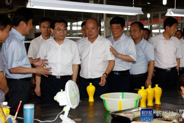 圖為陜西省省長(zhǎng)胡和平、銅川市委書記郭大為一行到火鳳凰藝術(shù)陶瓷有限公司調(diào)研。