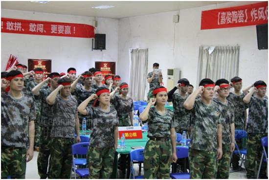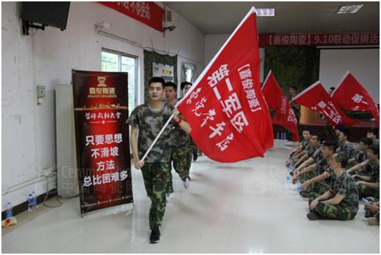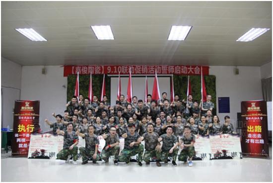 8月16日-8月18日,嘉俊陶瓷在廣州花都開展為期兩天兩夜封閉式、軍事化的廣東區(qū)域聯(lián)動促銷活動誓師啟動大會。來自廣東番禺、南沙、英德、高州、中山、惠州、淡水、興寧、塘廈、常平等地的經(jīng)銷商老板及其員工,總部業(yè)務(wù)和市場部人員共60余人。