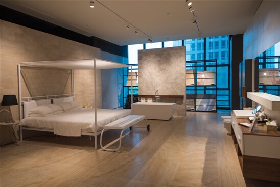 手握精品,何乾又在經(jīng)營模式上實現(xiàn)了一次領(lǐng)先全業(yè)的變革。他抓住消費者開始講求瓷磚風(fēng)格、整體家居環(huán)境配套這一市場痛點,主導(dǎo)金意陶“賭”了一把:拿出前一年所有利潤,投建了國內(nèi)第一座景觀式展廳——金意陶“思想館”。