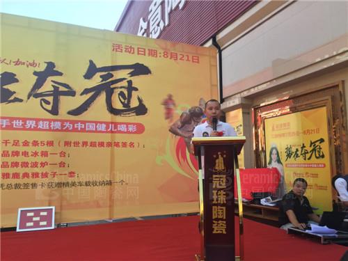 8月21日下午,河北保定和風(fēng)日麗、陽(yáng)光明媚,建材市場(chǎng)上多場(chǎng)促銷大戰(zhàn)同時(shí)上演。鑫豐建材市場(chǎng)冠珠陶瓷更是熱鬧非凡,冠珠大型簽售活動(dòng)以震撼全城的氣勢(shì)在此隆重舉行,吸引了300多位市民參加,再創(chuàng)佳績(jī)。