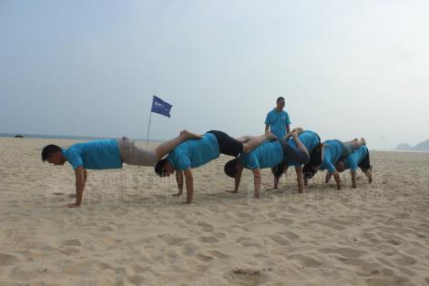 到達(dá)海陵島之后,倍加新陶瓷一行輕便裝束,集中在海陵島大角灣沙灘,在井然有序的組織下開始了拓展活動(dòng)。按照拓展培訓(xùn)的計(jì)劃,倍加新團(tuán)隊(duì)首先了進(jìn)行了抽簽分隊(duì),分成了三個(gè)小隊(duì),有霸氣外漏的火藍(lán)隊(duì)、激情四射的無海鷹隊(duì)、團(tuán)結(jié)奮進(jìn)的戰(zhàn)狼隊(duì)。在團(tuán)隊(duì)展示環(huán)節(jié)中,隊(duì)員們?cè)诟髯躁?duì)旗上畫隊(duì)徽、寫口號(hào),激情吶喊著各自團(tuán)隊(duì)的自編的口號(hào),做出情緒激昂的出場(chǎng)動(dòng)作。