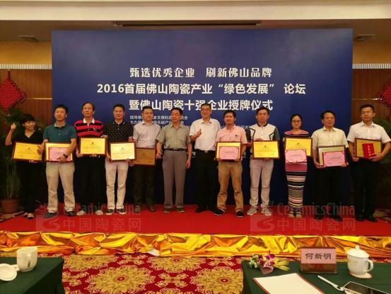 2016年8月13日下午,2016首屆佛山陶瓷行業(yè)綠色發(fā)展論壇暨佛山陶瓷十強(qiáng)企業(yè)授牌儀式在佛山市政府迎賓館舉行。蒙娜麗莎集團(tuán)副總裁劉一軍博士出席了此次會議,并代表公司領(lǐng)取了“佛山陶瓷企業(yè)十強(qiáng)”牌匾和榮譽(yù)證書。