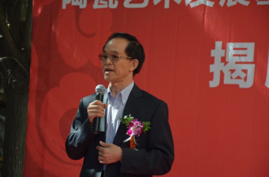 國(guó)家旅游局巡視員鄧宗德向來(lái)賓介紹自己對(duì)徐初澤及懸雕瓷畫(huà)的認(rèn)識(shí)與由衷欣賞
