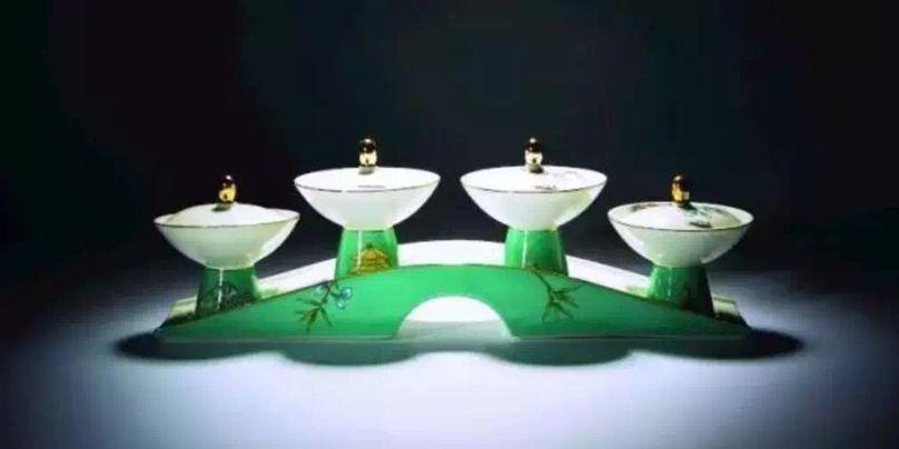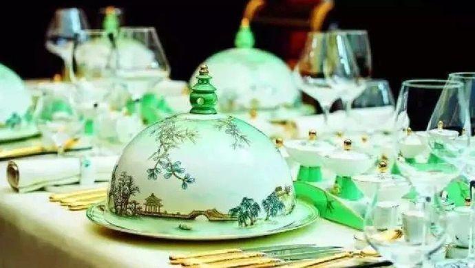這套國(guó)宴餐具原本設(shè)計(jì)了17套方案,最終選用了最后一套。設(shè)計(jì)者在滿足每道菜功能的同時(shí),最重要的是考慮到中國(guó)文化的傳遞和對(duì)G20的詮釋。“杭州最有代表的是西湖,所以最終方案從一滴水開(kāi)始講起。比如咖啡器具用的是蓮蓬,提鈕是水揪形狀,金色代表經(jīng)濟(jì)來(lái)往。”冷菜拼盤半球形的尊頂蓋是最引人注目的器具,尊頂蓋頂端提揪設(shè)計(jì)源于西湖十景之一、被譽(yù)為“西湖第一勝境”的三潭印月。尊頂蓋上半部圖案創(chuàng)意則來(lái)源于“滿隴桂雨”,以杭州市花——桂花與江南翠竹自然相互依偎展開(kāi),寓意美麗的杭州喜迎各國(guó)貴賓,同時(shí)也體現(xiàn)了G20成員同舟共濟(jì)、攜手合作的精神。尊頂蓋下半部分則是以國(guó)畫(huà)寫(xiě)意手法繪制的西湖美景。值得一提的是,這套國(guó)宴瓷還將轉(zhuǎn)換成家宴瓷,讓普通家庭也能用上中國(guó)文化餐具。