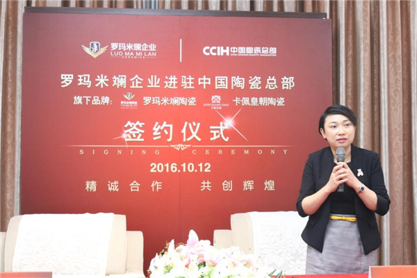 2016年10月12日上午11:08,羅瑪米斕企業(yè)進(jìn)駐中國(guó)陶瓷總部簽約儀式在中國(guó)陶瓷劇場(chǎng)3樓貴賓室隆重舉行。羅瑪米斕企業(yè)是中盛陶瓷旗下的主力轉(zhuǎn)型品牌,其中包含了羅瑪米斕陶瓷和卡佩皇朝陶瓷兩個(gè)子品牌,企業(yè)一直秉承“創(chuàng)一流品質(zhì)、創(chuàng)一流服務(wù)、創(chuàng)一流品牌”的宗旨,并以“創(chuàng)新、品質(zhì)、服務(wù)”為企業(yè)發(fā)展導(dǎo)向,致力提升產(chǎn)品附加值和品牌影響力。