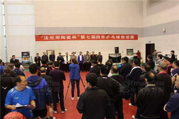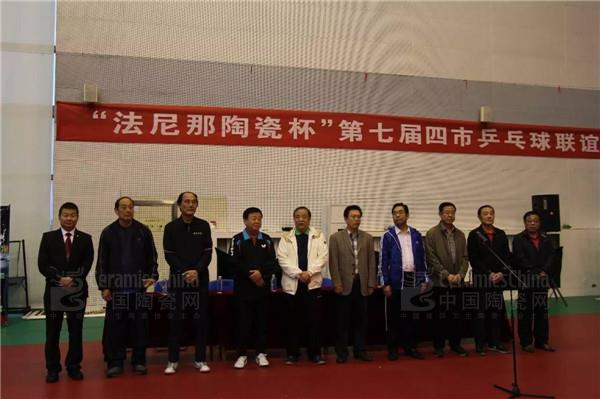 “法尼那陶瓷杯”第七屆四市乒乓球聯誼賽是一次較高水平比賽,四市地方政府和乒協(xié)領導高度重視,都派出了由當地政府、乒協(xié)領導為團長的高規(guī)格代表團。參加此次活動的主要領導:淄博市政府特邀咨詢蘇勇;山東理工大學黨委書記呂傳毅;濱州市原副市長于志剛;德州市人大原主任蘭忠良;德州市政協(xié)主席翟長生;德州市人大原副主任王衛(wèi)東;臨沂市政協(xié)副主席錢迎偉;魯南技師學院黨組書記李玉洪;聊城市市政府咨詢李軍生、淄川區(qū)政協(xié)主席李涌、淄川區(qū)副區(qū)長郭慶、淄博成暢建筑陶瓷有限公司董事長張召等。