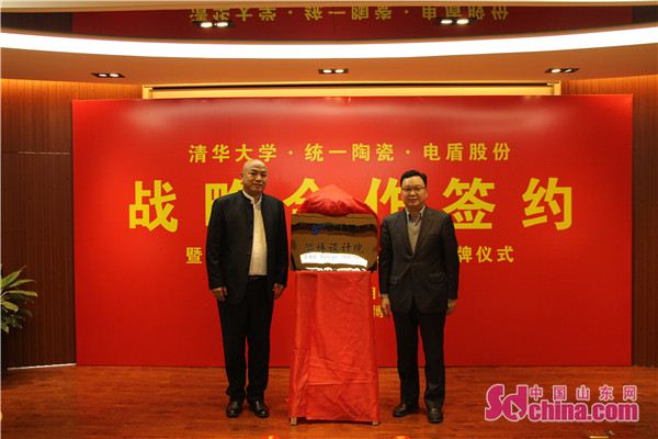 11月6日,清華大學(xué)與山東電盾科技股份科技有限公司、山東統(tǒng)一陶瓷科技有限公司戰(zhàn)略合作簽約暨建峰集團(淄博)設(shè)計院揭牌儀式,在淄博市淄川區(qū)高創(chuàng)中心舉行。清華大學(xué)原黨委書記、教育基金會原理事長賀美英,清華大學(xué)教育基金會秘書長李家強、大陸部主任戴勇,建峰集團設(shè)計院院長袁野等出席簽約儀式。