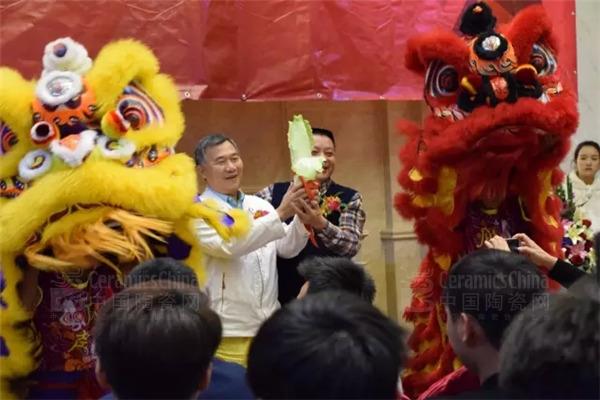 廣東歐雅企業(yè)董事長霍炳祥、逸家建材有限公司董事長鐘興共同為瑞獅點睛