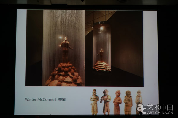 美國(guó)藝術(shù)家Walter McConnell的作品從河南博物館中挑選了四件唐代的胡俑,和一件美國(guó)收藏的中國(guó)胡俑,和他自己的一件雕塑,通過(guò)3D掃描技術(shù)重新翻模制作成為等人高的雕塑。荷蘭藝術(shù)家Jólan van der Wiel的作品在粘土中加入磁粉,從而來(lái)形成獨(dú)特的形態(tài)。藝術(shù)家在生產(chǎn)鈞瓷的陶瓷廠進(jìn)行創(chuàng)作,用到了中國(guó)傳統(tǒng)器形的模具。