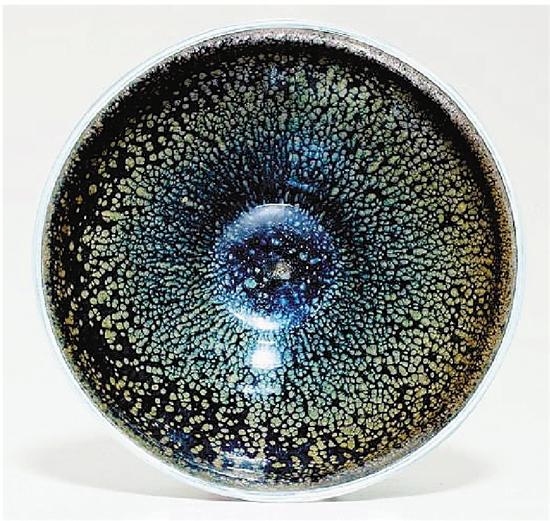 恍如一片星空,繁星點(diǎn)點(diǎn),神秘莫測……凝視這只精致的“天目盞”,不禁令人心潮起伏。這“碗底星空”,就是陳振華及他的研究團(tuán)隊(duì),最新燒制出來的一只“曜變天目盞”。