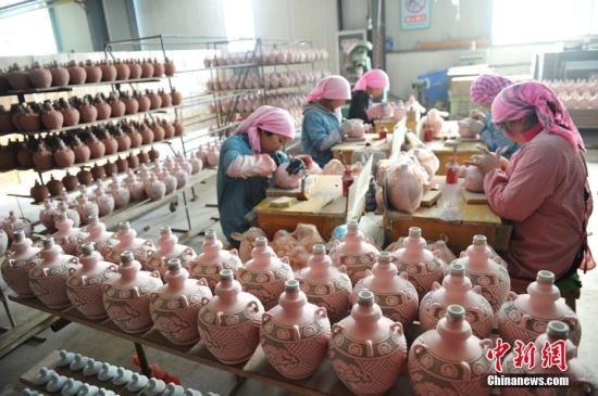11月下旬,甘肅武威普康陶藝廠內(nèi),工匠師們正在燒制“西夏古瓷”。近年來,中國社會科學(xué)院西夏文化研究所學(xué)者孫壽齡根據(jù)史料記載及歷史文物研究后,運(yùn)用傳統(tǒng)西夏瓷器制作技藝“復(fù)活”了一批極為珍貴的西夏瓷器。為了更好地發(fā)揚(yáng)和傳承西夏瓷器,在孫壽齡的建議下,當(dāng)?shù)匾患野拙破髽I(yè)將這些“復(fù)活”瓷器定制成為酒瓶,由陶瓷生產(chǎn)企業(yè)按照傳統(tǒng)工藝規(guī)模化生產(chǎn)實(shí)現(xiàn)商品化,讓瀕臨失傳的西夏瓷器文化復(fù)興。