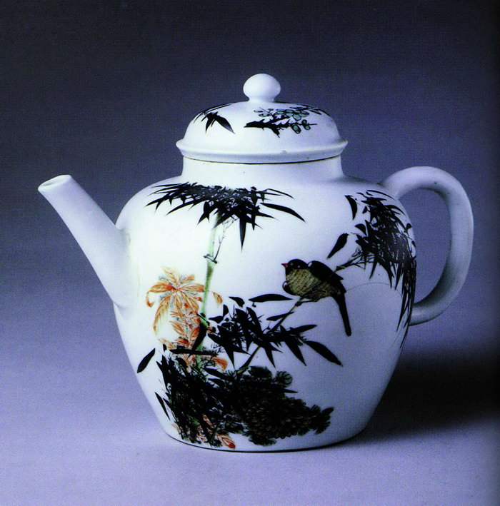 一碟清式瓷盤(pán),中部繪制著耶穌受洗禮的場(chǎng)景,背景是郁郁蔥蔥的木蘭樹(shù),邊緣上繪制著幾個(gè)跳舞的天使。一只鑲著金邊的瓷壺,表面勾勒出喬治·華盛頓的面孔,栩栩如生,這把壺制造于18世紀(jì)到20世紀(jì)間。直到今天,西方人仍在驚嘆瓷器的精美和技藝的繁復(fù)。