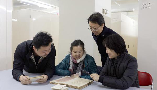 故宮工作人員整理明清尺牘(資料照片)。故宮博物院經(jīng)過三年藏品清理工作,增加了55132件登記藏品,涉及乾隆御稿、尺牘、甲骨、陶瓷等種類文物、標本。這些新“上戶口”的藏品已于3月15日起在延禧宮展覽。