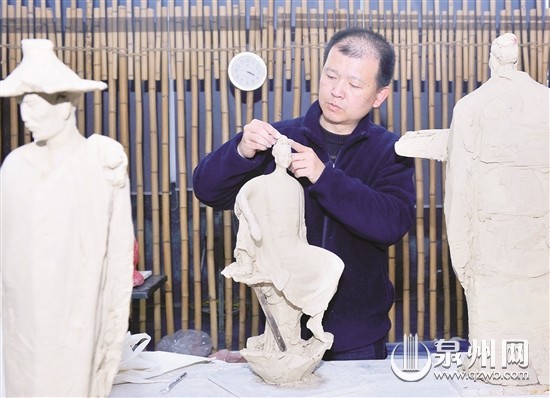 近日,記者走進(jìn)德化瓷言坊,中國工美行業(yè)藝術(shù)大師顏松柳正在精心創(chuàng)作《觀自在》作品,只見觀音面容清瘦略帶微笑,造像線條簡練,彰顯魏晉風(fēng)格。在展廳一個(gè)角落里,記者見到《禮·樂》作品。提及這件作品,顏松柳仍記憶猶新。那是2013年12月在德化舉行的福建省陶瓷現(xiàn)場技藝大賽,來自省內(nèi)數(shù)百名參賽者,只角逐一個(gè)獎(jiǎng)項(xiàng)——“福建省五一勞動(dòng)獎(jiǎng)?wù)?rdquo;。在規(guī)定的時(shí)間內(nèi),眾人矚目下,從泥塑到瓷塑均要現(xiàn)場完成。