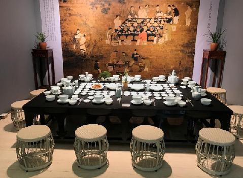 仿古瓷展區(qū)展出了包括宋景德鎮(zhèn)窯青白釉弦紋瓶、元青花魚藻紋大盤、明成化斗彩龍紋盤等200余件仿古精品,其中曾拍出2.3億天價(jià)的元青花鬼谷子下山大罐和2.8億港幣的明成化斗彩雞缸杯等高仿制品,維妙維肖,令人嘆為觀止。景德鎮(zhèn)的高仿瓷生產(chǎn)至少可以追溯到明代早期,如永樂御窯生產(chǎn)的仿龍泉青瓷,最典型的當(dāng)屬明成化、清康雍乾三代大量的仿宋官窯、哥窯和龍泉窯瓷器。此次展覽主要集中的是元明清三代的高仿瓷,從景德鎮(zhèn)有影響力的仿古瓷生產(chǎn)廠家遴選而來。記者還注意到,展區(qū)內(nèi)依據(jù)宋徽宗趙佶《文會(huì)圖》畫境布設(shè)的仿古青白瓷茶會(huì)場景別具一格,充分顯示了中華瓷茶文化相通相融的極致風(fēng)姿。