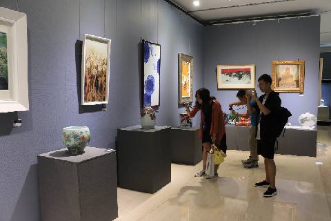 藝術(shù)瓷是景德鎮(zhèn)傳統(tǒng)陶瓷文化的重要組成部分。在藝術(shù)陶瓷展區(qū)內(nèi),68件瑰麗多姿的現(xiàn)代陶藝、凝練厚重的陶瓷雕塑、流光溢彩的瓷上彩繪,呈現(xiàn)出時(shí)代性、古典型、地域性和國際化的美學(xué)特質(zhì),帶來愉悅的視覺享受,其清脆激越與渾厚連綿的韻律之美讓人心馳神往、遐想無窮。王步、王希懷的青花斗彩《壽桃圖》,王錫良的天青釉開光《公園圖》,張松茂的粉彩《山高水長》等館藏藝術(shù)陶瓷精品也在現(xiàn)場與觀眾零距離接觸,展示了近現(xiàn)代景德鎮(zhèn)陶瓷藝術(shù)的獨(dú)特神韻。