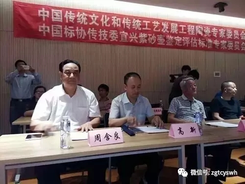 中國(guó)傳統(tǒng)文化和傳統(tǒng)工藝發(fā)展工程陶瓷研究開(kāi)發(fā)工作委員會(huì)主任高新(左二)