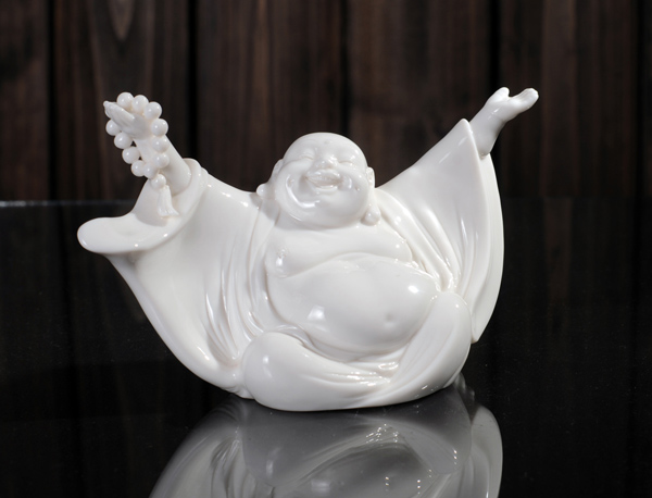 當代德化實力派陶藝家鄭志德作品,采用德化白瓷泥制作,作品造型大氣,雕刻精細。彌勒笑容滿面,雙手舉起,將快樂傳遞感染每一人。
