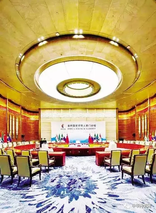 鳳凰廳是此次廈門會(huì)晤最重要的會(huì)議場館之一,舉辦的是金磚五國大范圍會(huì)議。這個(gè)大廳的設(shè)計(jì),則充滿了“閩南元素”。