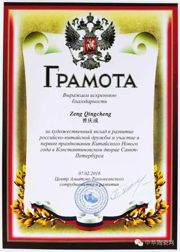 2016年獲中俄友誼貢獻藝術獎。