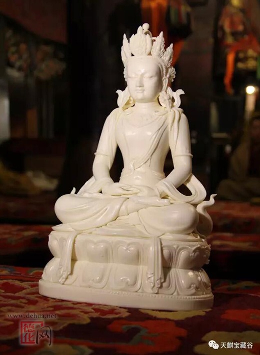 班禪大師接見了參加活動的相關(guān)人員,并為大家摩頂祝福贈送哈達(dá)。德化縣人大副主任鄭榮尊代表德化政府贈送畫冊宣傳頁,向大師仔細(xì)介紹了德化白瓷的歷史和現(xiàn)今發(fā)展情況,以及在本月剛剛結(jié)束的舉世矚目的廈門金磚會晤中,德化白瓷國禮以及無處不在德化陶瓷元素,并代表德化縣政府邀請大師蒞臨德化參觀視察指導(dǎo)。班禪大師仔細(xì)聆聽了介紹,給予了肯定。大師在詳細(xì)的觀看了捐獻(xiàn)的瓷質(zhì)佛像,與以天麒投資藝術(shù)總監(jiān)蔡志奇為代表的主創(chuàng)團(tuán)隊進(jìn)行座談,了解造像的制作工藝流程,詢問了造像的成本、銷售環(huán)節(jié),聽取了主創(chuàng)團(tuán)隊的回答和介紹。班禪大師對本次捐獻(xiàn)的白瓷類佛像及瓷器用品給予了高度的評價,對捐贈表示感謝,充分肯定了寶藏谷團(tuán)隊制作的藏傳佛像:“度量精準(zhǔn),工藝精湛,造像精美”。勉勵大家再接再厲,繼續(xù)制作創(chuàng)造高工藝高水平的瓷質(zhì)佛像及瓷類用品。最后班禪大師說:“我會為你們祝福”。捐贈活動在熱烈喜慶的氣氛中結(jié)束。