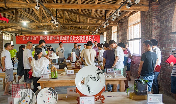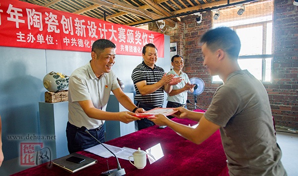 【德化網(wǎng)訊】26日下午,“筑夢(mèng)港灣”青年陶瓷創(chuàng)新設(shè)計(jì)大賽頒獎(jiǎng)儀式在洞上陶藝村舉行?h委常委、組織部長(zhǎng)黃曉東等出席頒獎(jiǎng)儀式,并為獲獎(jiǎng)選手頒獎(jiǎng)。
