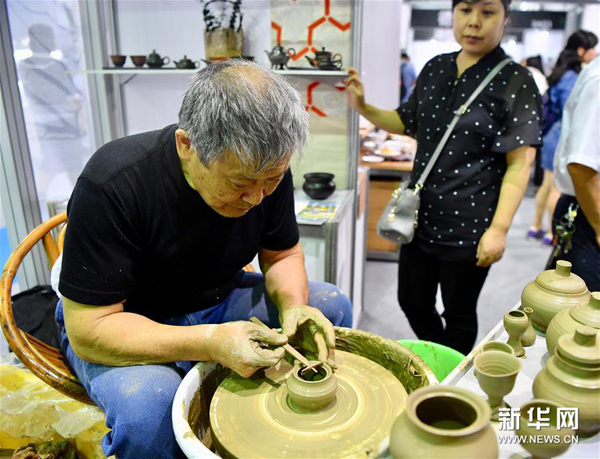 9月28日,參加博覽會(huì)的一位日本匠人在拉坯。 新華社發(fā)(薛宇舸 攝)