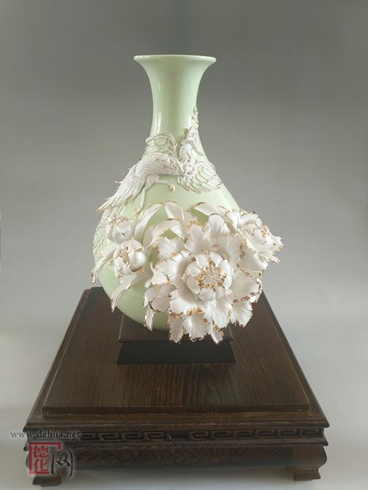 林麗品創(chuàng)作瓷線雕主要關(guān)注“瓷線”線條本身的審美特質(zhì)。當(dāng)一個坯體拿在手中,她任憑自己的想象,由心構(gòu)圖,隨心所欲地在坯體上用“瓷線”盤、結(jié)、繞、堆等“雕”出各種精致而浮凸的紋樣、圖形。經(jīng)過幾年創(chuàng)作,林麗品的漆線雕技藝日漸成熟,也獲得了業(yè)界的認(rèn)可。其中,她創(chuàng)作的《鳳梅瓶》被省藝術(shù)館非物質(zhì)文化遺產(chǎn)博覽苑收藏,作品《滿堂富貴》在第十二屆中國(莆田)海峽工藝品博覽會優(yōu)秀作品評比中獲金獎,《風(fēng)穿牡丹》榮獲2016年中國工藝美術(shù)“百花獎”銀獎等。(圖:王雙季、吳朝燁提供)