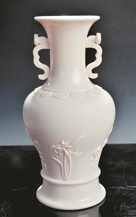通過對古瓷的收藏研究,陳明良也形成了自己獨(dú)特的風(fēng)格。“蒲團(tuán)觀音”、“千年窯火”、“水月觀音”、“佛光普照”、“文昌帝君”等一些系列作品都是他的杰作。同時(shí),他再現(xiàn)了“象牙白”“玉白”“豬油白”“蔥根白”“孩兒紅”等珍瓷,加上活靈活現(xiàn)的刻畫雕塑,使作品幾近完美無瑕,達(dá)到爐火純青的境界。