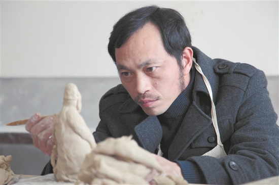 何派技藝傳承人陳明良大師在創(chuàng)作泥塑
