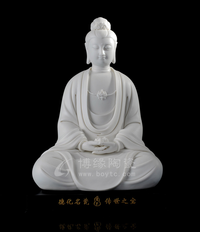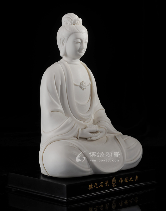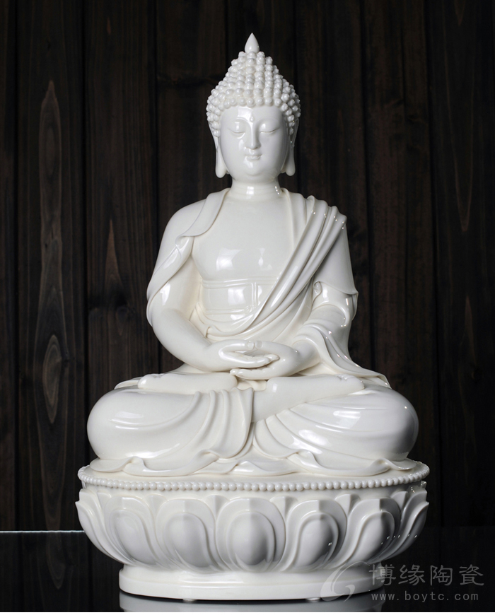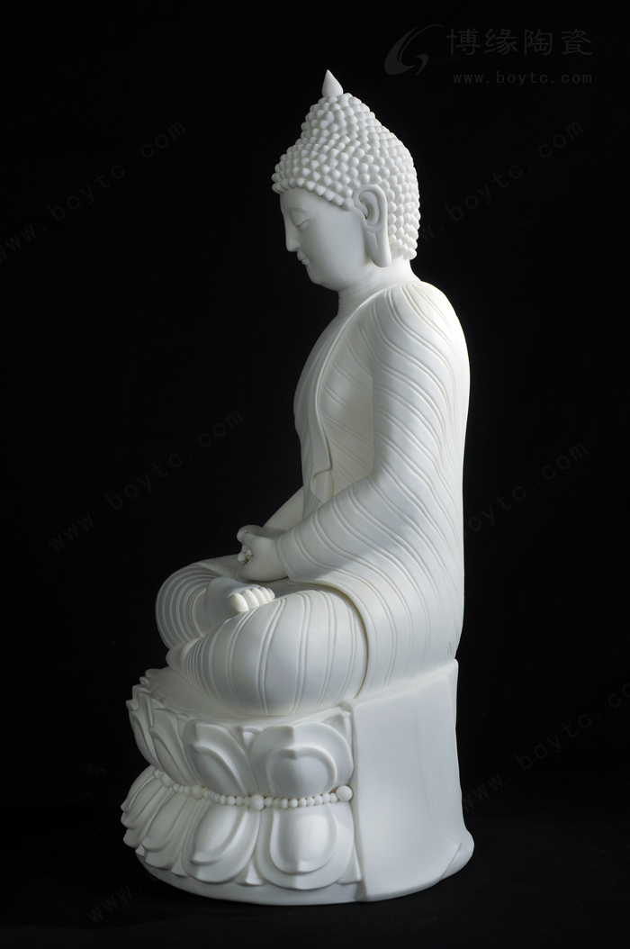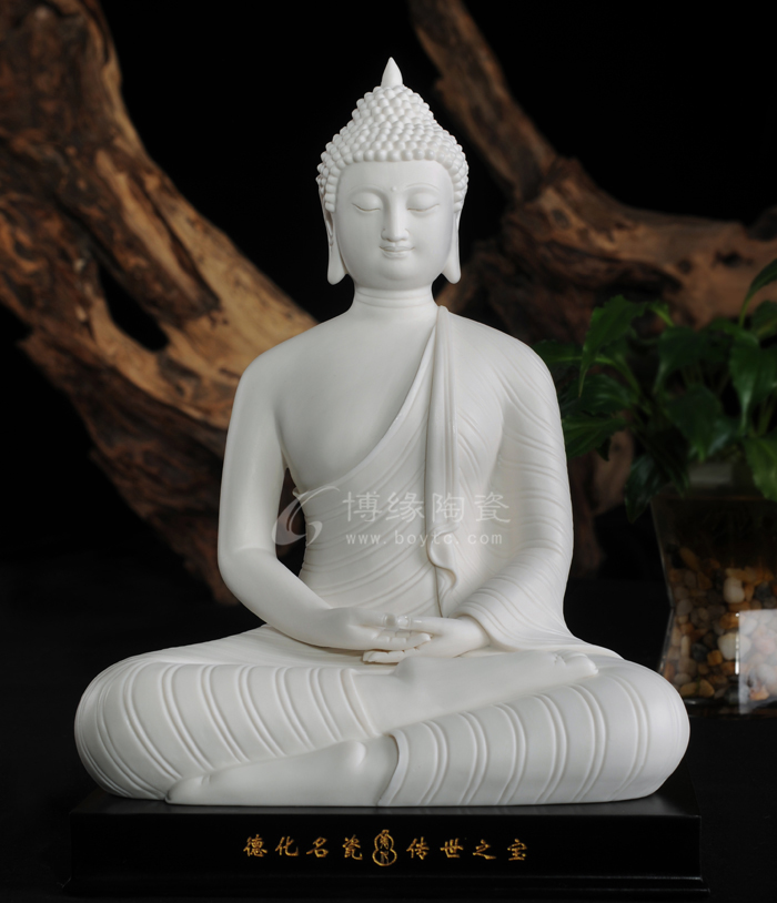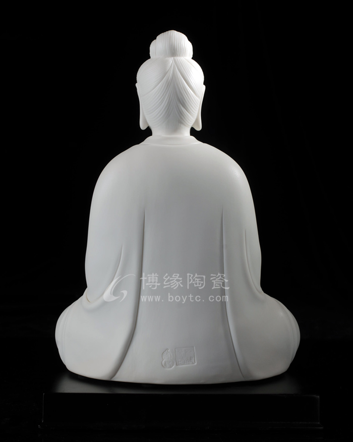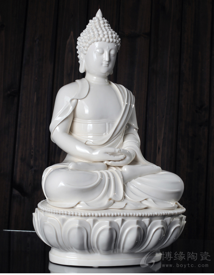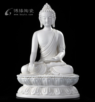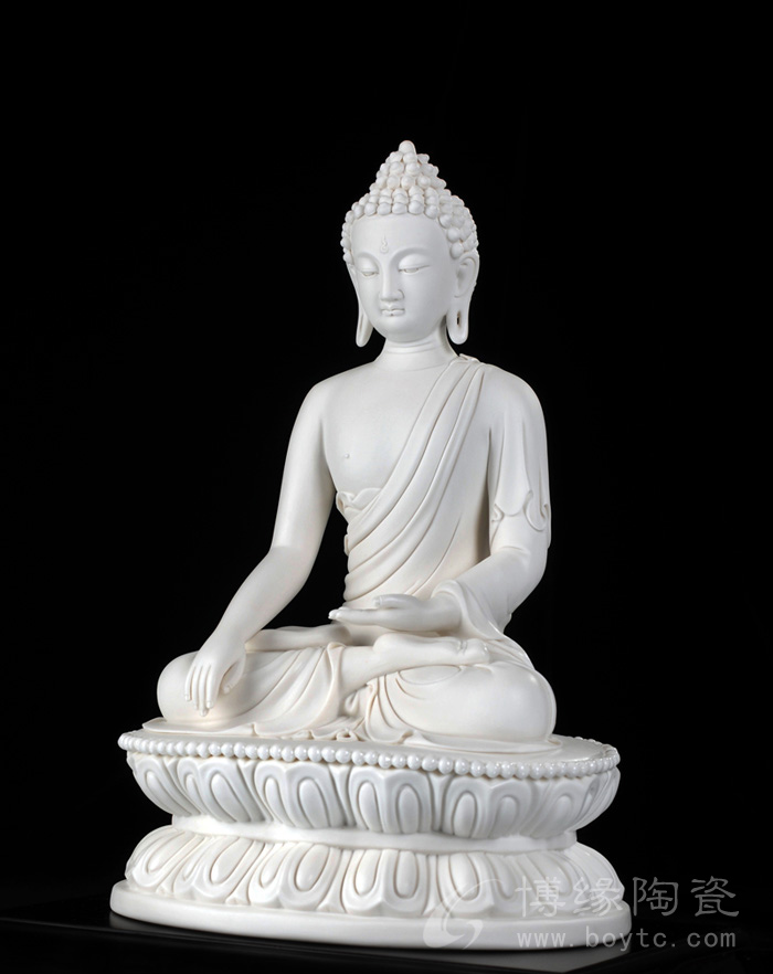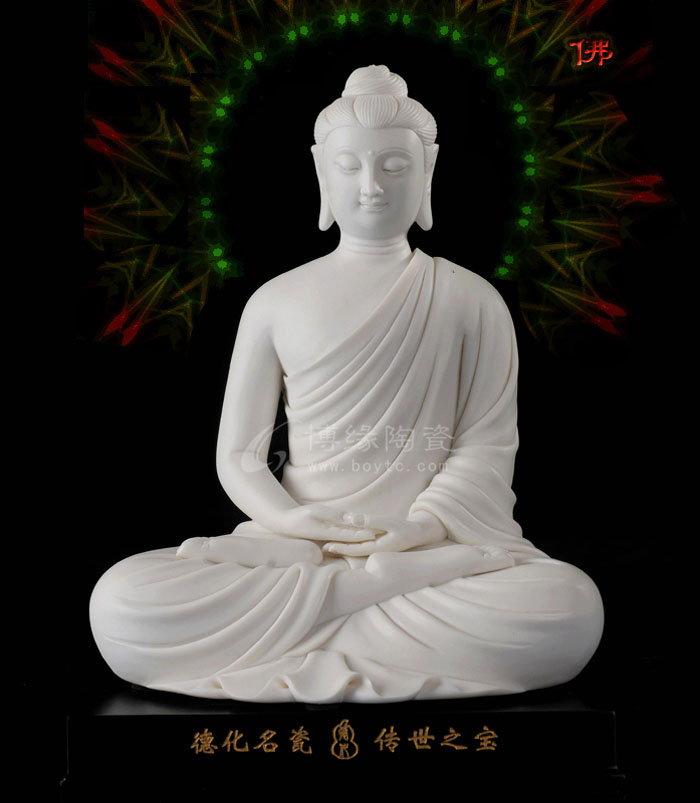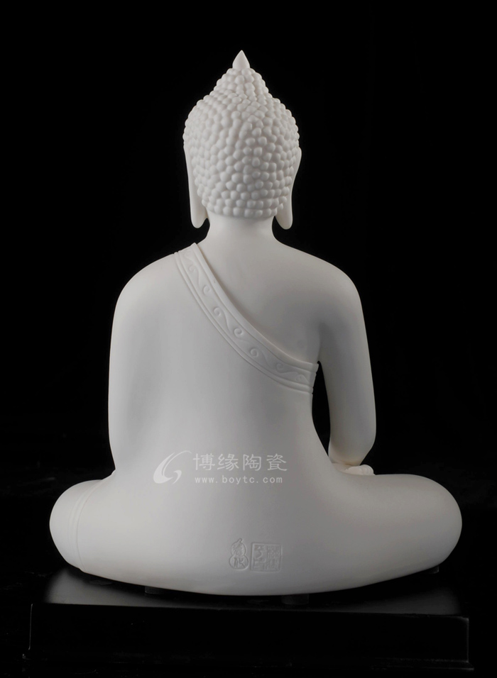 《釋迦牟尼佛》作品以德化特有溫潤(rùn)如玉的“中國(guó)白”為胎質(zhì),純手工制作,一千三百度高溫?zé)贫。作者技法嫻熟利落,精雕?xì)刻,把作品釋迦牟尼的面部,手部,各個(gè)細(xì)節(jié)都雕刻的細(xì)致入微,釋迦牟尼佛慈眉善目,蓮眼低垂,手指圓潤(rùn)有利,玉潤(rùn)細(xì)膩,立意妙雅純粹,造型別致新穎,衣物線條自然,紋理清晰,形象栩栩如生,作品給人以素雅,自然,靜心的感覺(jué)。作品背部有大師落款,具有較高的收藏、鑒賞價(jià)值。