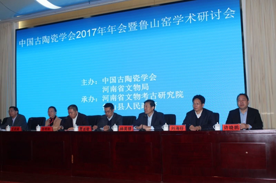 窯火神工,千年一夢。2017年10月20日至22日,中國古陶瓷學(xué)會2017年年會暨魯山窯學(xué)術(shù)研討會在平頂山召開。會議由中國古陶瓷學(xué)會、河南省文物局主辦,河南省文物考古研究院、魯山縣人民政府承辦。中國古陶瓷學(xué)會會長王莉英,中國古陶瓷學(xué)會副會長孫新民、陳克倫、沈岳明、李建毛、李廣寧等來自海內(nèi)外的近150余名專家學(xué)者出席研討會。