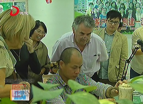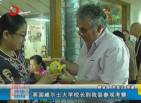 【同期聲 英國威爾士大學(xué)校長休斯:我非常高興能夠到這兒來,然后看到這么多的作品,我知道德化的(陶瓷)文化源遠(yuǎn)流長,有千年的歷史,就是我們來這兒學(xué)習(xí)的話,印象非常深刻,希望將來能夠(合作),我們大學(xué)能夠跟這邊合作,能夠把東西方的文化,能夠通過兩個(gè)大學(xué)的交流,把兩個(gè)民族的文化促進(jìn)帶動(dòng)起來!