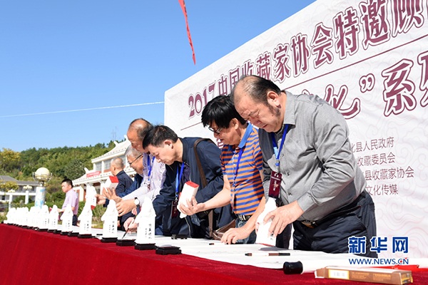 開(kāi)幕式上,中國(guó)收藏家協(xié)會(huì)特邀顧問(wèn)簽名。(新華網(wǎng)發(fā)許華森攝)