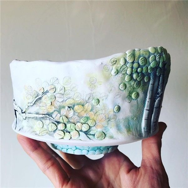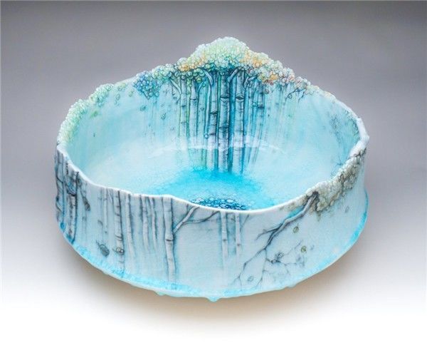 一般常見的陶瓷器皿,外觀或者個性粗獷,或者精致細膩,但是藝術家 Heesoo Lee 制作的陶瓷作品,除了基本的收納功能外,這些瓷器外觀看起來簡直像一幅幅山清水秀的風景浮雕畫。