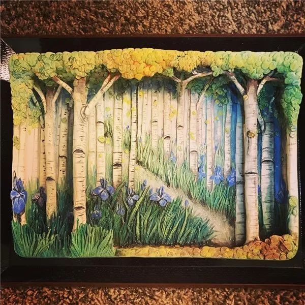 不過在這么優(yōu)美的外表之下,可費了 Heesoo Lee 不少功夫,細節(jié)豐富的林木樹葉都是手把手一個個捏好輪廓再黏到粗胚上,上色的過程就更不用說了,但如此辛苦的作業(yè),換得這些美麗的成果,想來也是值得的。