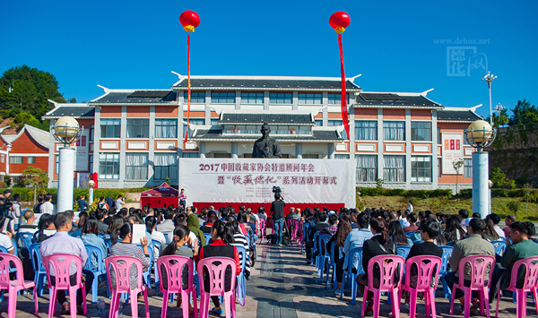 10月26日,2017中國收藏家協(xié)會特邀顧問座談會暨“收藏德化”系列活動在德化縣召開。中國收藏家協(xié)會會長羅伯健,武警工程學院原院長何虎將軍,德化縣委書記梁玉華,德化縣委副書記陳金忠,德化縣政府副處級干部徐文福,中國收藏家協(xié)會、全國各省市收藏家協(xié)會的領導與嘉賓,德化縣陶瓷發(fā)展聯(lián)席會議成員單位領導,來自全國各地的陶瓷收藏愛好者,德化部分大師新秀代表,以及新華社、中新社、中央電視臺、福建日報、泉州晚報等20多家新聞媒體的記者們參加開幕式。開幕式上,中國收藏家協(xié)會發(fā)布“德化宣言”,啟動“收藏德化”系列活動。當天,還舉辦2017“德化窯”歷代名家名瓷珍品展以及2017“中國白”德化陶瓷藝術精品展,10件海歸何朝宗款作品和15件歷代名家陶瓷精品、100名當代藝術家的100件藝術精品集中亮相。