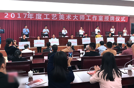 11月1日,2017年度工藝美術(shù)大師工作室授牌儀式在泉州市政府舉行,全市30個工藝美術(shù)大師工作室的領(lǐng)銜大師現(xiàn)場領(lǐng)取了工作室牌匾。其中,德化縣獲評9個,數(shù)量位居全市第一。獲命名的9個工作室分別是李國林、陳為坦、陳梗生、曾素妹、鄭建冰、孫敏強(qiáng)、林星育、林超程、陳行一的大師工作室,這標(biāo)志著我縣工藝美術(shù)行業(yè)保護(hù)傳承和創(chuàng)新發(fā)展邁出了新的步伐。