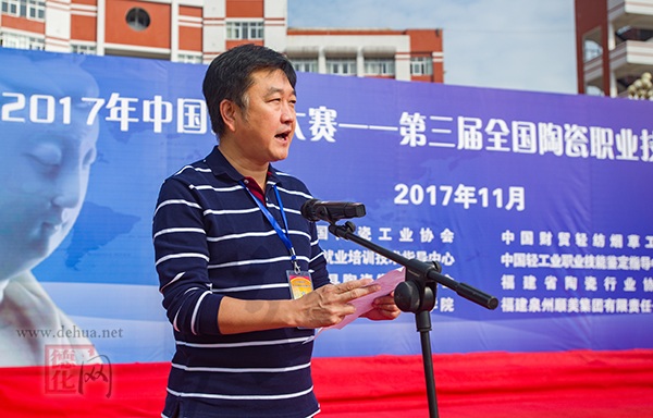 中國財貿(mào)輕紡煙草工會副主席,大賽仲裁組組長王雙清宣讀《關(guān)于表彰全國陶瓷行業(yè)技術(shù)能手的決定》