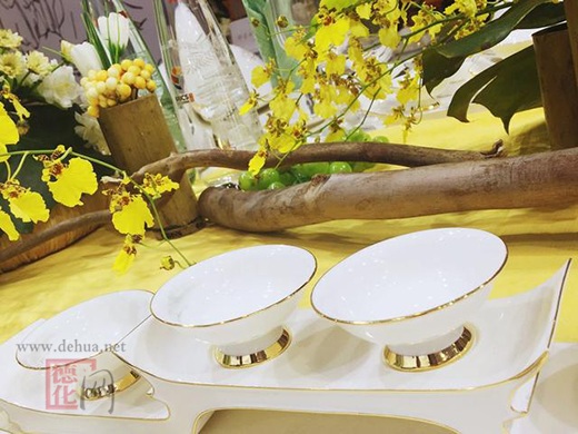 鑫五洲總經(jīng)理郭建洲介紹道,“鑫五洲出品的國(guó)宴瓷“五彩祥云”,以“萬(wàn)國(guó)建筑博覽會(huì)”鼓浪嶼風(fēng)光為題材,以祥云為器形主設(shè)計(jì)元素,采用德化建白瓷與鎏金工藝相結(jié)合,呈現(xiàn)“鼓浪元素,鷺島風(fēng)情,閩南氣韻,中國(guó)情懷”。歷經(jīng)9個(gè)多月匠心打造,突破多項(xiàng)技術(shù)瓶頸,經(jīng)過(guò)重重篩選,最終登上國(guó)宴餐桌,為大家展示了簡(jiǎn)約而不簡(jiǎn)單的德化白瓷。”