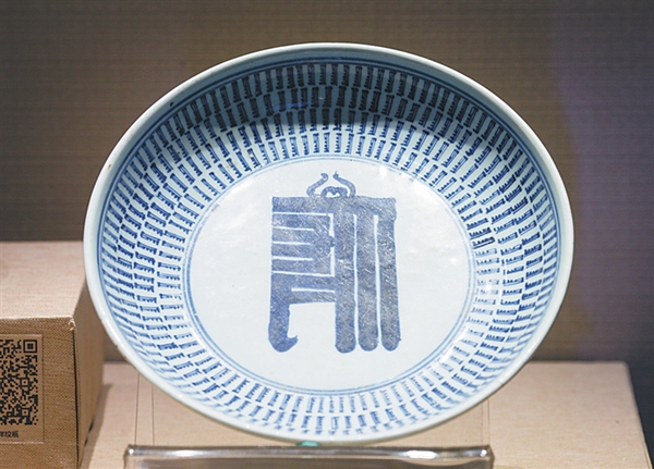 清代青花梵文瓷盤(pán)。海南日?qǐng)?bào)記者 王玉潔 攝