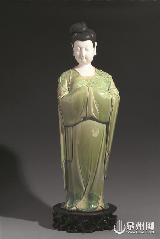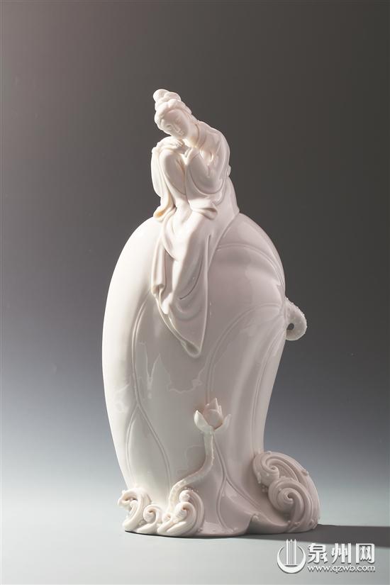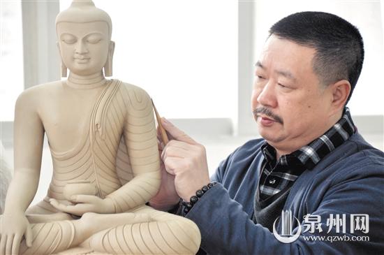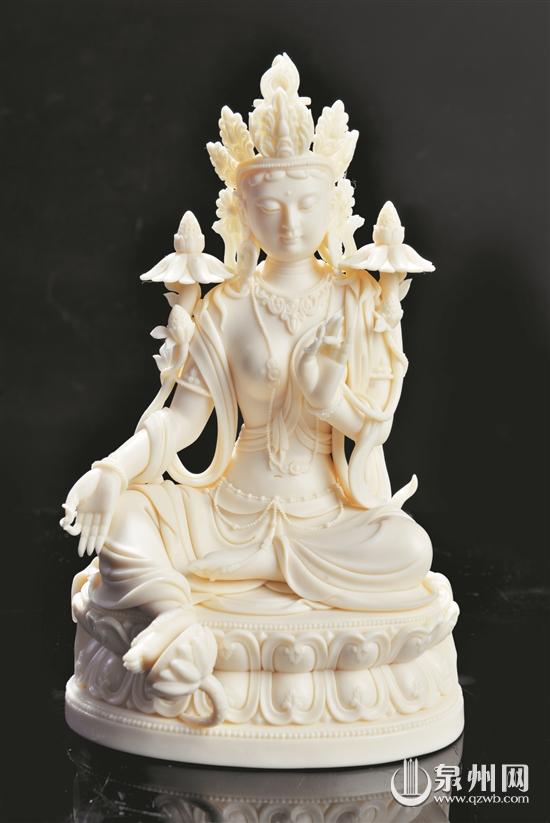 我們平時(shí)所見(jiàn)藏傳佛像多為銅像,但在林建勝的“聚玉堂”藝術(shù)館內(nèi),記者見(jiàn)到的如《長(zhǎng)壽佛》《綠度母》等藏傳佛教造像作品,則是用德化白瓷來(lái)表現(xiàn)。林建勝說(shuō),這些年他在研習(xí)藏傳佛教,也在創(chuàng)作這方面的作品。為做好作品,他專門(mén)去西藏等地感受風(fēng)土人情,學(xué)習(xí)當(dāng)?shù)匚幕。他說(shuō),只有不斷學(xué)習(xí)、親身體驗(yàn),作品才更真實(shí),才更有靈性。