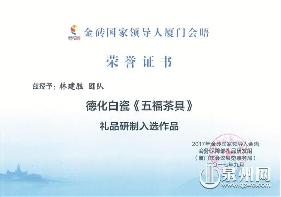 “其實(shí)當(dāng)初茶壺是做成圓形的。”林建勝說(shuō),考慮到這樣太過(guò)普通,美感度差,后來(lái)想到南瓜的模樣,還特意去觀察南瓜,將圓形改為五瓣的南瓜造型,寓意金磚五國(guó)抱團(tuán)共同發(fā)展。將圓形分為五瓣,林建勝面臨燒制時(shí)易變形的風(fēng)險(xiǎn),為此他不僅在雕塑時(shí)下了很多工夫,在燒制時(shí)也非常小心謹(jǐn)慎。